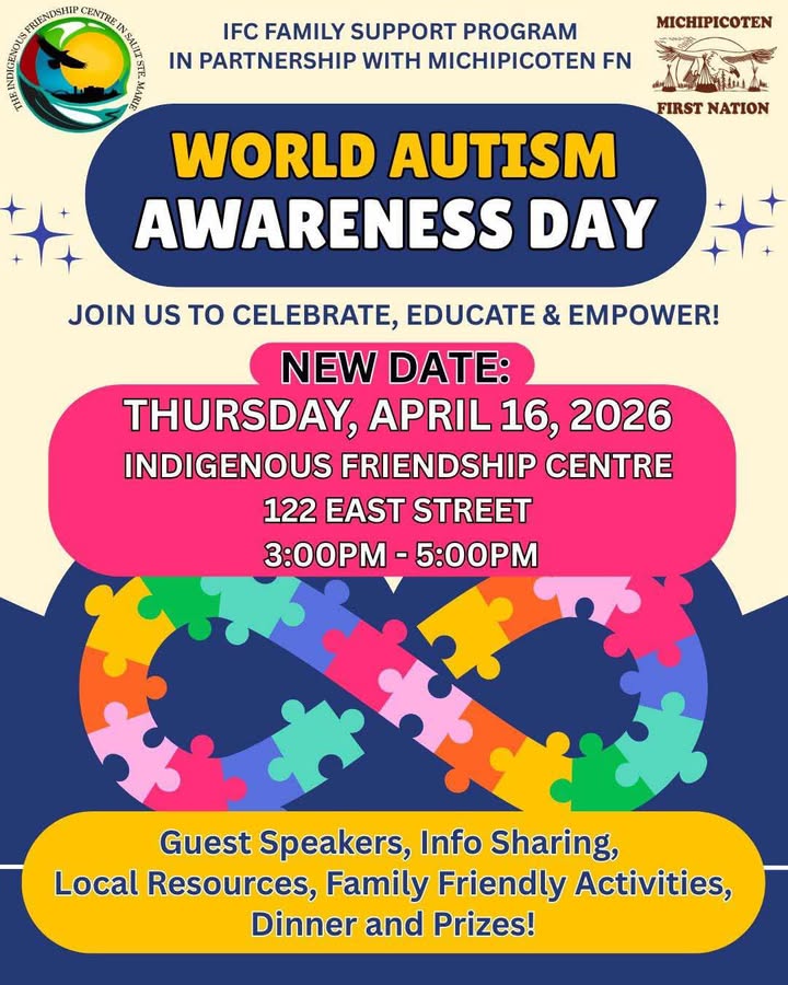 IFC Family Support Program in partnership with Michipicoten First Nation. Join us to celebrate, educate and empower! Guest Speakers, info sharing, local resources, family friendly activities, dinner and prizes!
